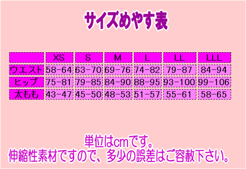 シャドーサポーターパンツ サイズ表 XS S M L LL LLL ウエスト 58-64 63-70 69-76 74-82 79-87 84-94 ヒップ 75-81 79-85 84-90 88-95 93-100 99-106 フトモモ 43-47 45-50 48-53 51-57 55-61 58-65 メール便の場合は送料350円と致します。